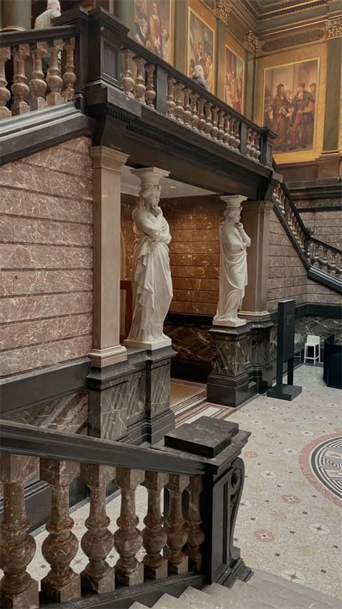 قدیم دریافتیں - کیریٹائڈس مجسموں کی موجودگی اور مجموعی طور پر آرکیٹیکچرل اسٹائل نے سختی سے تجویز کیا کہ یہ ایک یورپی سائٹ ہے ، ممکنہ طور پر ایک بڑے شہر میں جس میں ایک اہم آرٹ یا ہسٹری میوزیم ہے۔